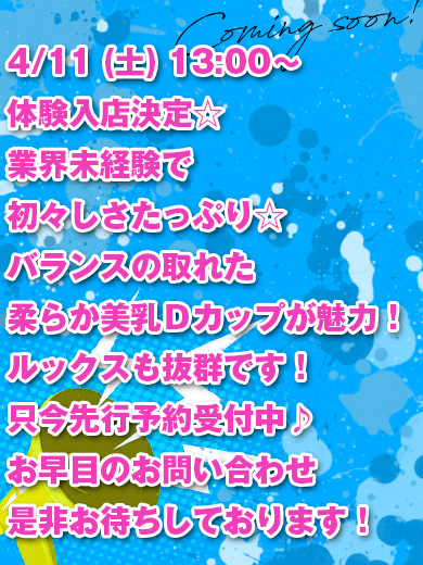 ![]() ★☆体験入店情報☆★ 体験 ゆうら ちゃん(22) ![]() T159/B85-D/W57/H84 体験 しゅり ちゃん(18) ![]() T163/B83-C/W57/H84 体験 あやの ちゃん(21) ![]() T164/B87-E/W56/H84 体験 えいみ ちゃん(23) ![]() T157/B88-F/W57/H84 体験 れな ちゃん(23) ![]() T153/B90-H/W58/H85 体験 そらの ちゃん(22) ![]() T158/B87-E/W57/H84 体験 きらら ちゃん(22) ![]() T165/B85-D/W56/H83 体験 もね ちゃん(25) ![]() T154/B90-G/W58/H85 体験 みみ ちゃん(20) ![]() T145/B83-C/W56/H82 体験 なつな ちゃん(20) ![]() T152/B90-H/W57/H84 体験 ゆい ちゃん(27) ![]() T167/B83-C/W56/H83 体験 うる ちゃん(22) ![]() T150/B87-E/W57/H84 体験 いちか ちゃん(18) ![]() T158/B82-B/W56/H83 体験 あみり ちゃん(21) ![]() T162/B84-C/W56/H82 体験 めい ちゃん(22) ![]() T160/B83-C/W56/H82 体験 うらん ちゃん(20) ![]() T156/B83-C/W57/H84 ★☆新人情報☆★ 新人 つばさ ちゃん(21) ![]() T160/B86-D/W56/H84 新人 かすみ ちゃん(26) ![]() T155/B87-E/W57/H84 新人 りく ちゃん(24) ![]() T156/B83-C/W56/H83 新人 にの ちゃん(22) ![]() T151/B83-C/W56/H82 新人りんご ちゃん(22) ![]() T157/B85-D/W56/H83 新人 ゆか ちゃん(23) ![]() T161/B83-C/W56/H82 新人 まほ ちゃん(25) ![]() T163/B84-B/W56/H84 新人 みお ちゃん(25) ![]() T160/B82-B/W56/H83 新人 さら ちゃん(23) ![]() T153/B83-C/W56/H83 詳しい出勤情報の確認は ↓ ↓ ↓ ☆★こちらから★☆ ★☆メルマガ連日配信中☆★ 毎日お得な情報満載♪ メルマガ会員様限定の 割引イベントも毎日あり!? まずは登録してみよう♪ ↓ ↓ ↓ ★☆ご登録はこちらから☆★ |